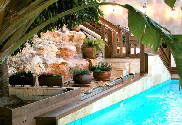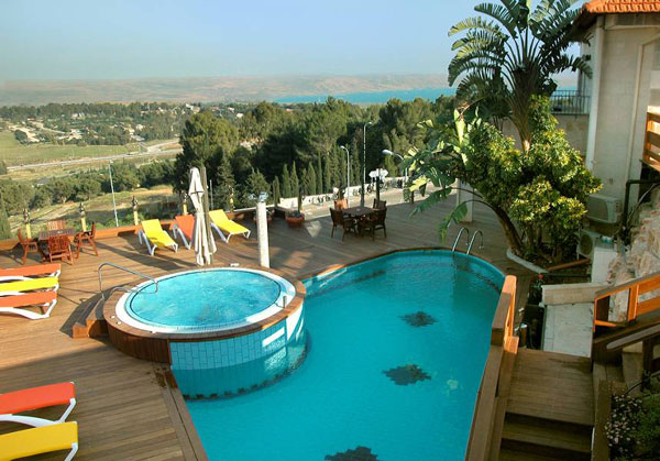 במרכז החצר ניצבת לה בריכת שחייה כחולה וגדולה,ג´קוזי ספא ענק מבעבע מעליה ומפל מים הנשפך אל הבריכה.חדר סאונה יבשה לפינוק אמיתי.בחצר תאורת גן לילית ומרשימה,מיטות שיזוף ססגוניות ופינות ישיבה מעץ הצופות אל הנוף הגלילי עוצר הנשימה.