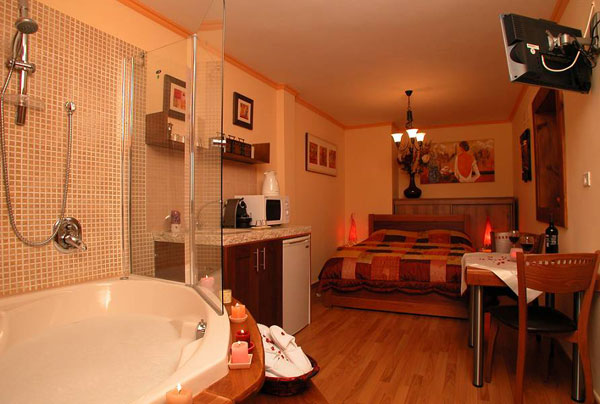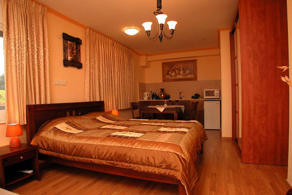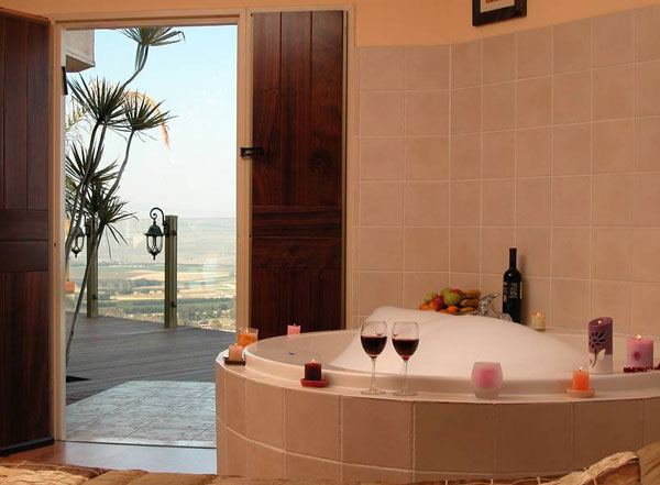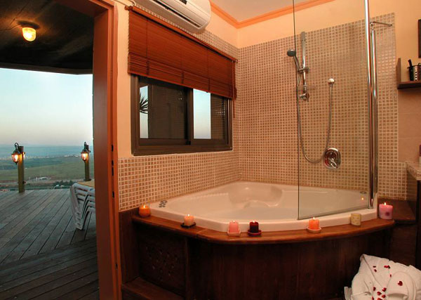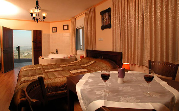 מול הנוף,ארבע סוויטות בנויות כל אחת כגלריה פתוחה ובה רצפת פרקט.בכל סוויטה ג´קוזי מפנק וסביב לו נרות ריחניים,חלוקי רחצה ונעלי בית.בסוויטה גם מיטה זוגית גדולה עטויה מצעים נקיים .מול המיטה טלוויזיה מחוברת ללווין עם DVD .פינת אוכל ומטבח מאובזר היטב ובו מכשיר אספרסו לאוהבי הקפה.